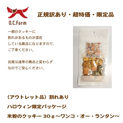 商品カテゴリ一覧 > オーシーファームオリジナル > お菓子・パン > クッキー > (アウトレット品)割れあり ハロウィン限定パッケージ 米粉のクッキー30g〜ワンコ・オー・ランタン〜