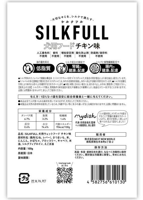 商品カテゴリ一覧 > 新商品・期間限定商品 > SILKFULL(シルクフル) 犬用プレミアムウェットフード チキン味 100g